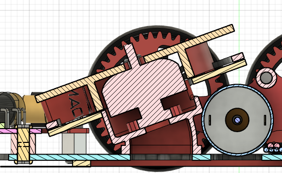 足回りはほぼ前作からの流用なので、しばらくはM0.3のギヤを採用していましたが、クラッシュ時にモータのパワーにギヤが負けて歯欠けすることがあったためM0.5に変更しました。